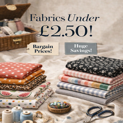 You’ll find popular fabrics, like Satin Check, available for under £2.50 per metre in this amazing collection.