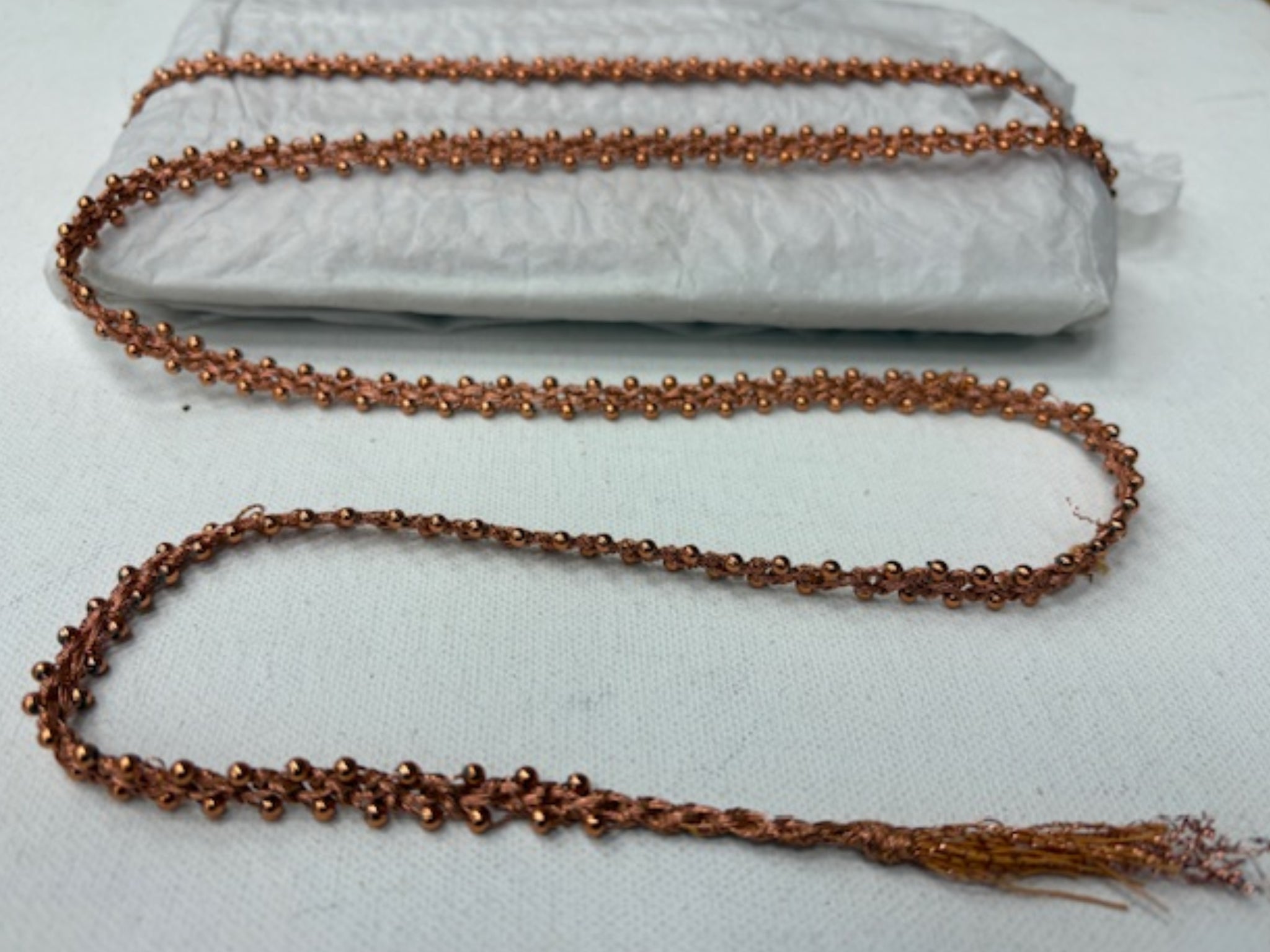 This refined metallic trim features intricate handwoven construction with a lustrous finish, measuring approximately 9mm in width. The metallic zari delivers sophisticated embellishment for garments and textile projects requiring premium decorative detailing.