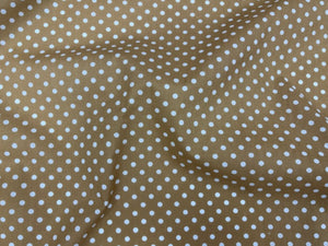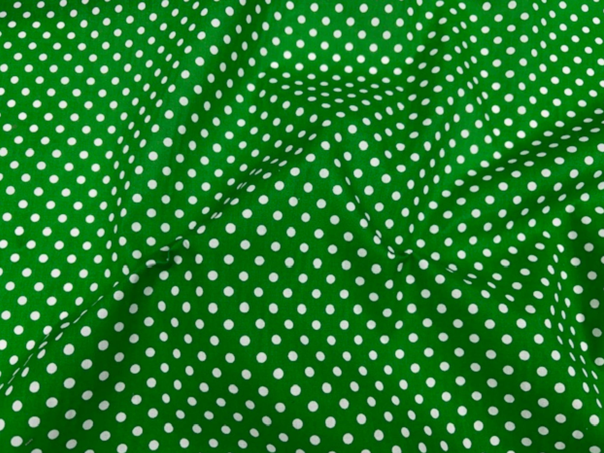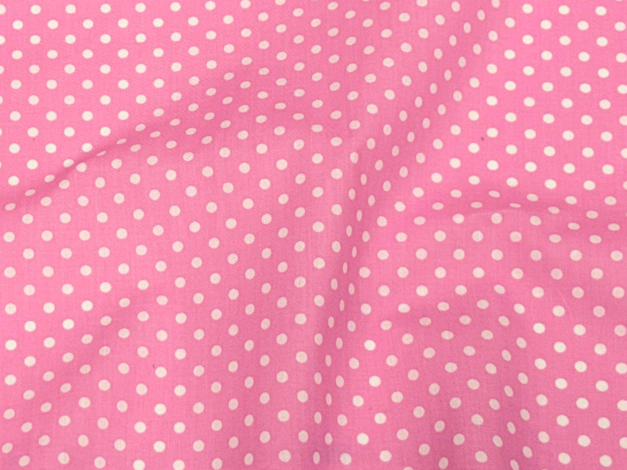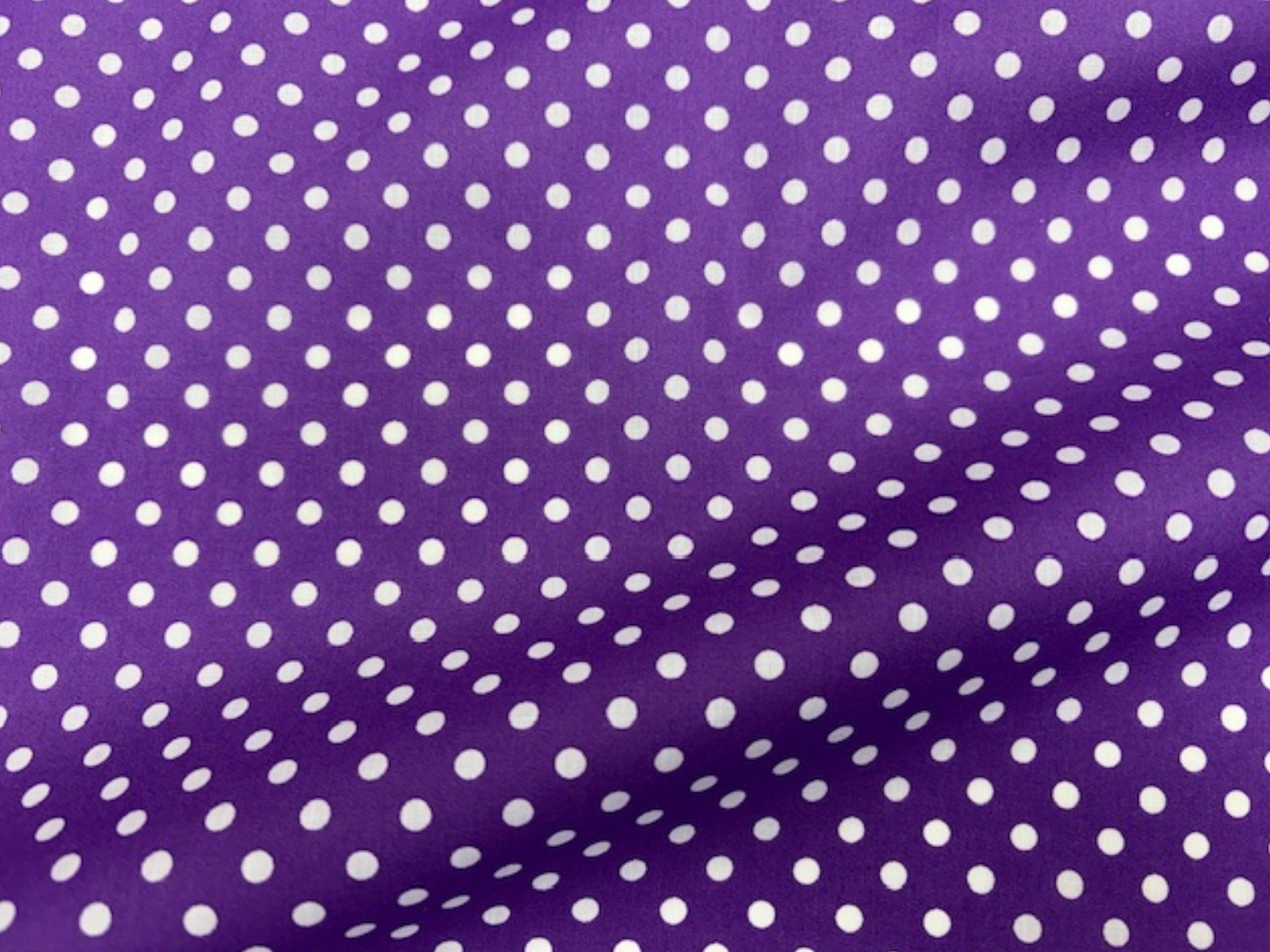 Our lightweight polycotton fabric is a durable yet soft blend of 20% cotton and 80% polyester, offering comfort with added strength. Featuring small polka dots measuring approximately 4–5mm in diameter, this fabric is perfect for creating fun inspired designs.