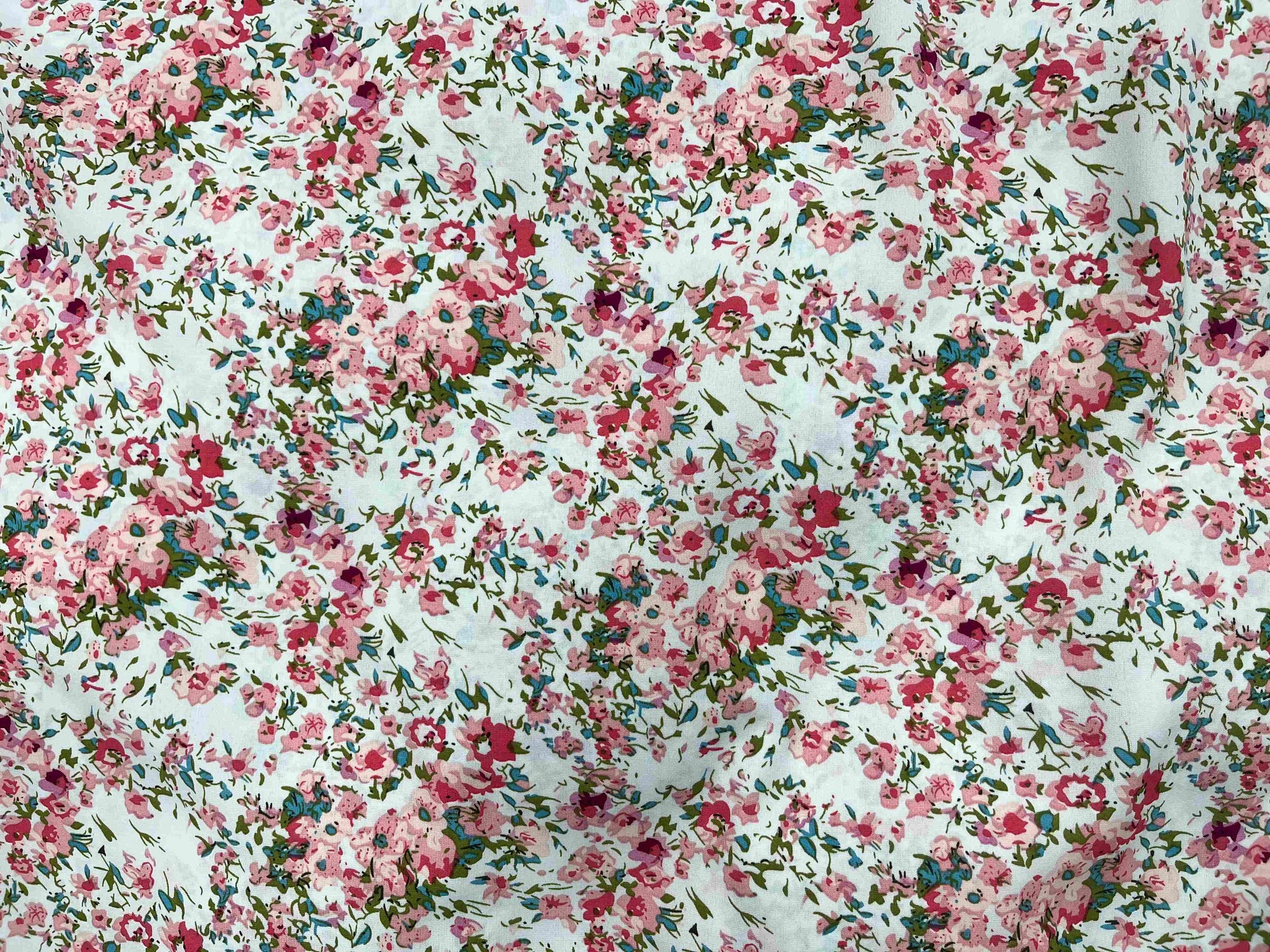 Featuring a classic floral pattern in warm coral tones, this crepe fabric resists creasing for a consistently polished look. The naturally fluid drape makes it versatile for any occasion, whether you're crafting everyday wear or special pieces. Discover fabric that's as beautiful as it is dependable.