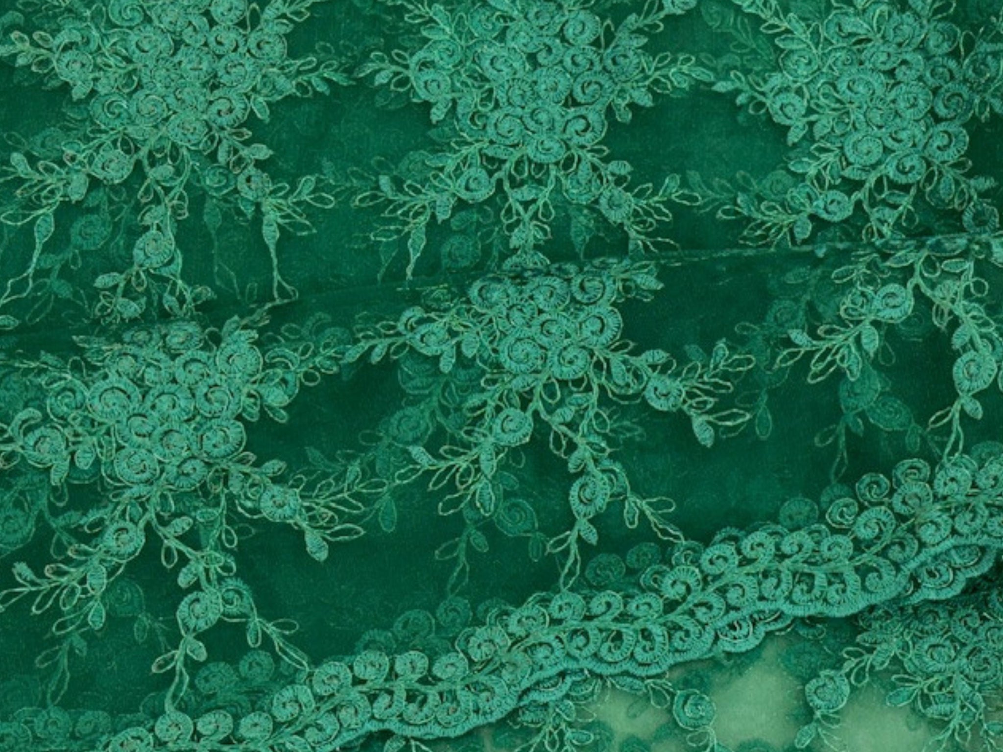 A stunning tulle fabric with a machine embroidery and embellishment of small sequins. This fabric also has a scalloped edge on both sides. Take advantage of this unbelievably low price while stocks last!