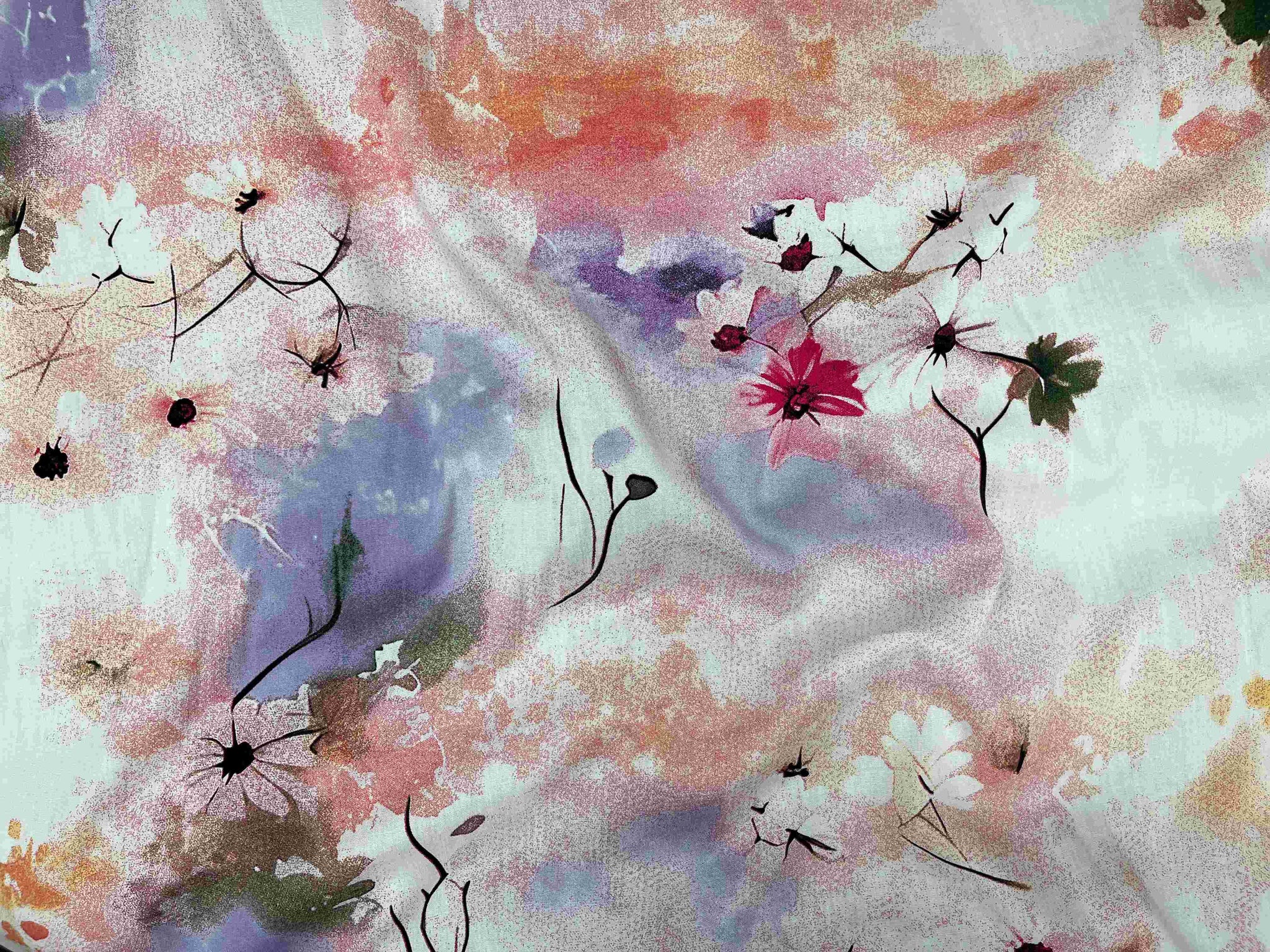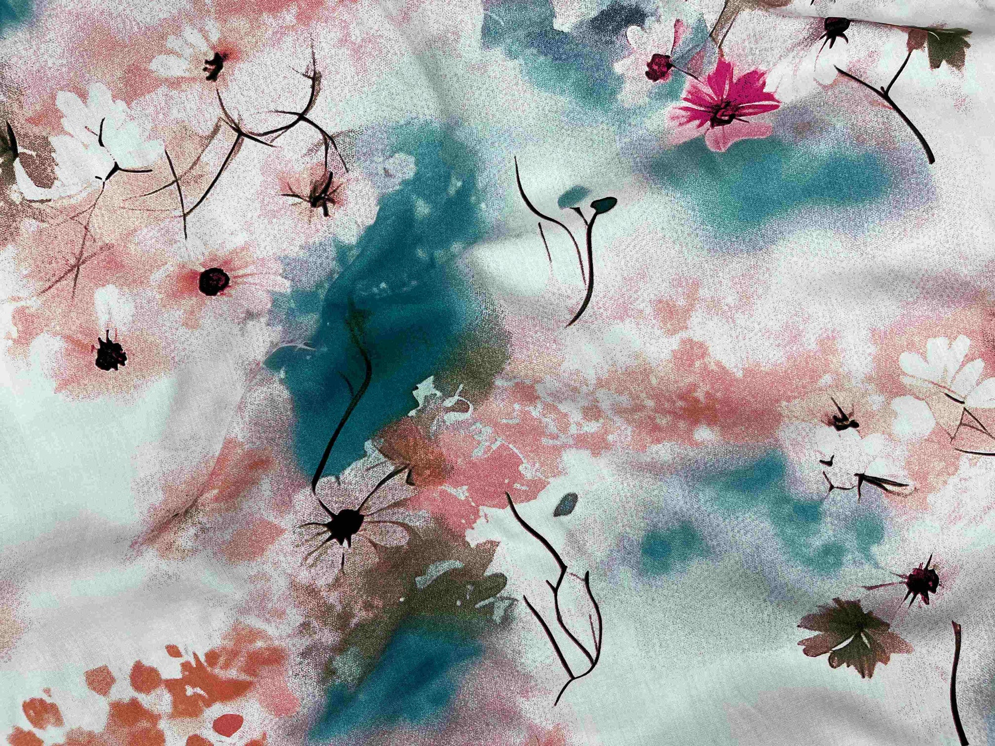 Experience the luxurious softness and excellent drape of our deluxe printed viscose fabric. Featuring a modern floral print, this fabric combines style and comfort, making it ideal for creating elegant garments that feel as good as they look.